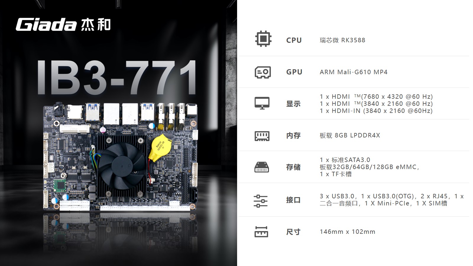 本次永利3044官网科技高交会展示的工业计算机主板IB3-771、IB3-761,搭载了Rockship的芯片,可应用于工业自动化、物联网解决方案和汽车系统,已经被多数客户部署在工厂车间以及物联网生态系统的智能设备中。