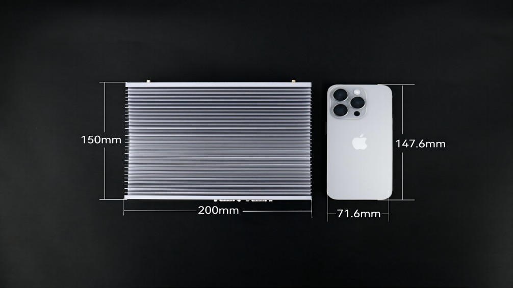 没有了风扇这一部件,体积也更为小巧,能轻松嵌入各类设备或狭小空间,完美贴合特定场景需求,例如:永利3044官网AE613,其三围尺寸是200mm x 150mm x 50mm,与iphone15的尺寸对比,宽度仅比其高度多2.4毫米,体积仅有1.5L。