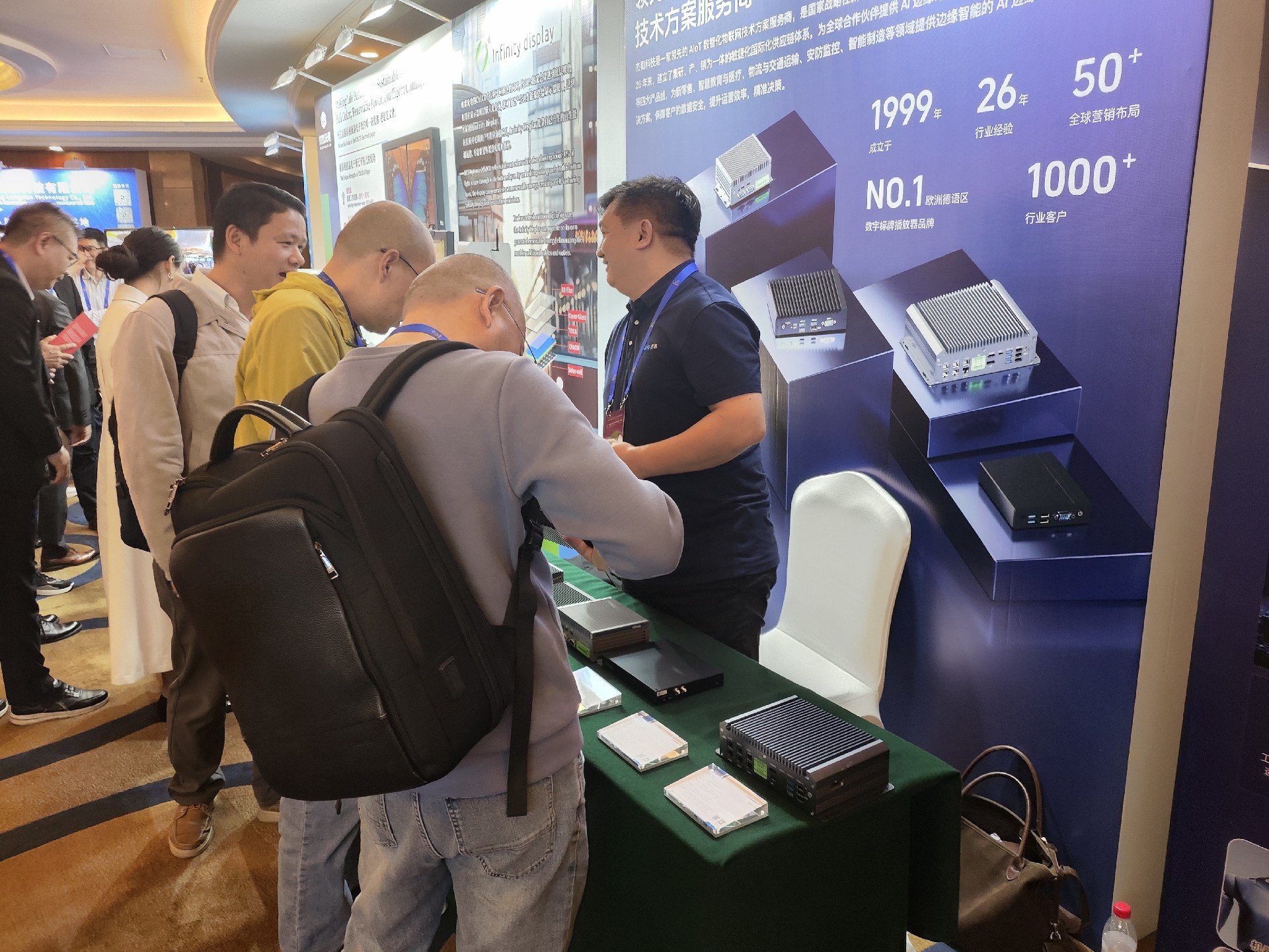 在产品技术体验区,永利3044官网科技展台吸引了众多与会者驻足。通过现场部署的AI边缘计算盒与嵌入式硬件,来宾亲身体验了其在智慧零售、高清数字标牌、多功能互动信息亭等场景下的流畅应用与实时智能分析能力,生动印证了其解决方案的成熟度与实用性,获得了现场客户与伙伴的高度认可。