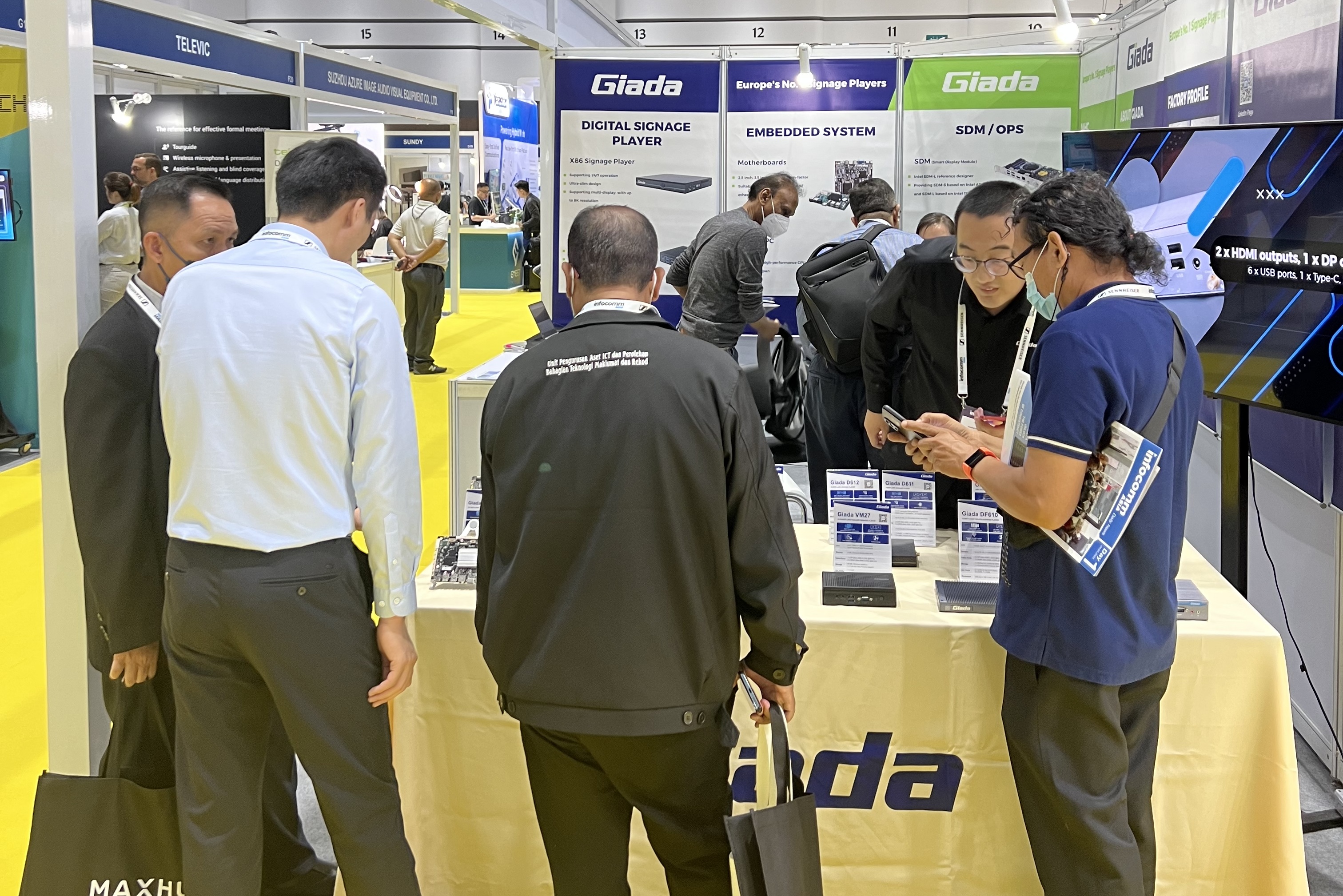 此次InfoCommAsia 2023展会,Giada永利3044官网科技携最新产品及方案亮相。致力于为全球企业客户解决智能化应用需求的永利3044官网,此次展会带来了数字标牌播放器、边缘计算机、OPS/SDM和嵌入式主板等的最新产品,并展示了一系列量身定制的解决方案,以满足泰国市场的具体需求,为亚太地区的数字化转型带来全新势能。展会期间,Giada的展台现场气氛火爆,展位人流络绎不绝!