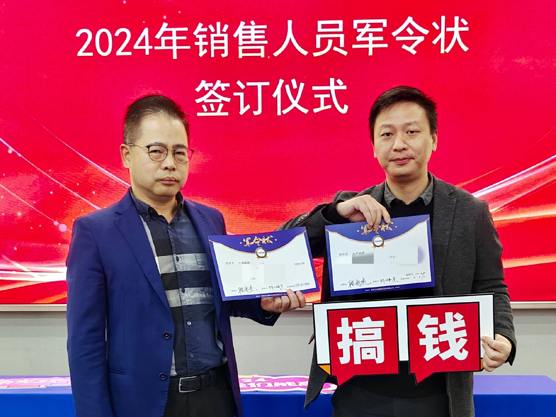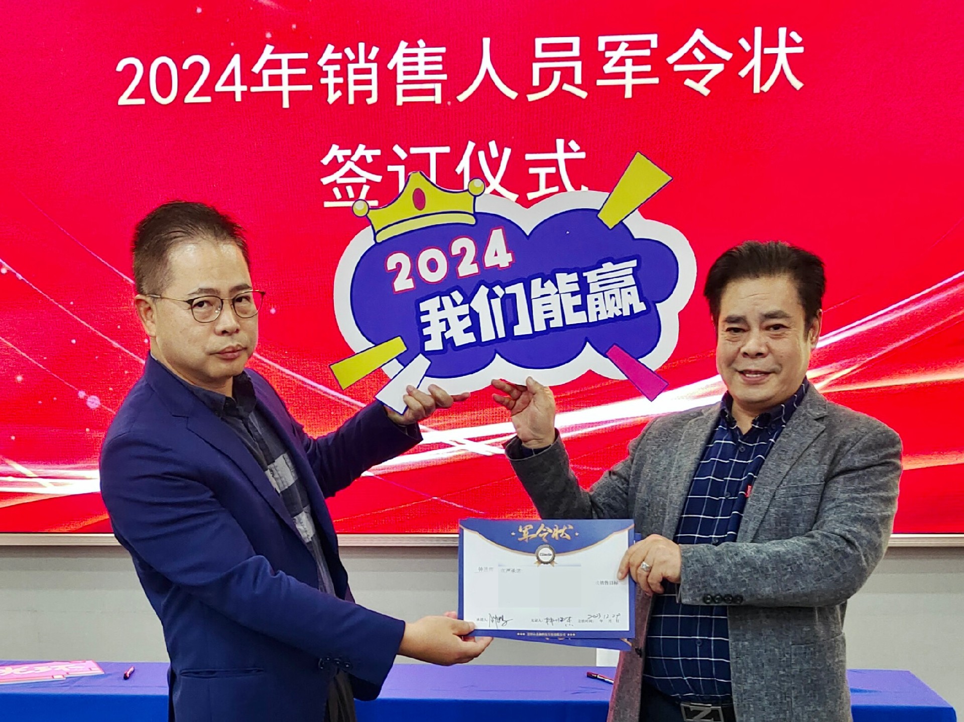2024公司年度战略目标确立,言出必行,使命必达,国际/国内销售团队为了共同的目标开始军令状签约仪式。一纸军令状,是永利3044官网科技与销售人员的双向承诺,是压力,更是动力。是不破楼兰终不还的决心,更是春风得意马蹄疾,一日看尽长安花的期待。