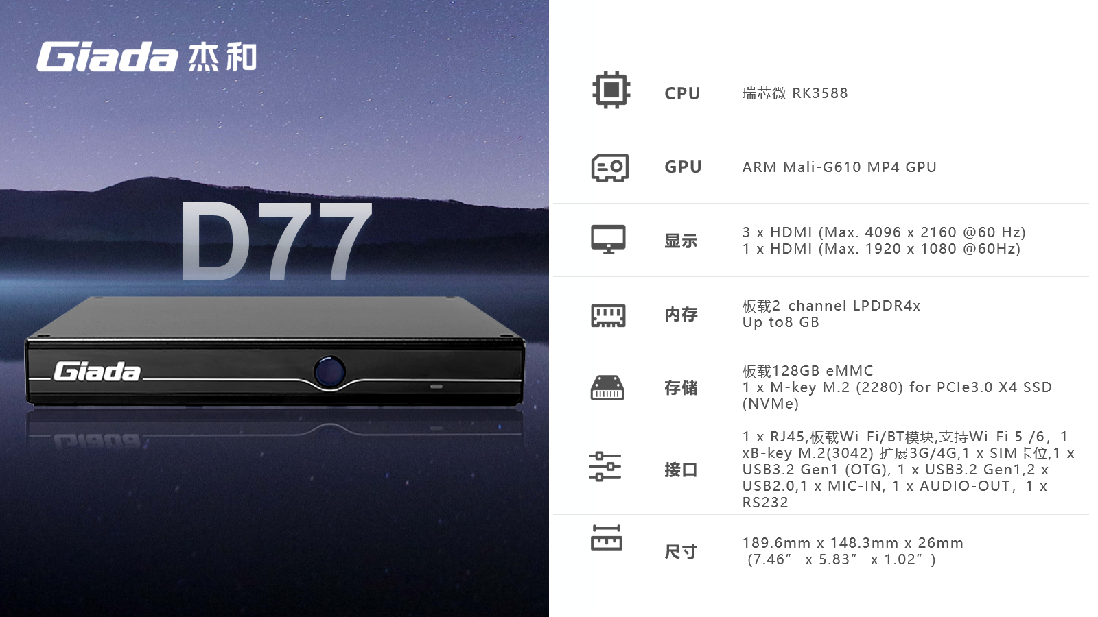 AIoT的落地场景包括智慧工业、智慧零售、智慧社区、智慧城市、智能显示、医疗健康等领域,在实际落地时,对物联网硬件设备的AI算力、数据运算、存储能力,稳定性及可扩展性能等提出更高要求,Giada永利3044官网科技作为行业领先的物联网数智化技术服务商,深入布局AIoT领域,推出AI产品系列,包括3.5寸主板、嵌入式整机、边缘计算盒子等,全方位覆盖了入门级到高性能级,满足不同应用场景的需求,为用户赋能。