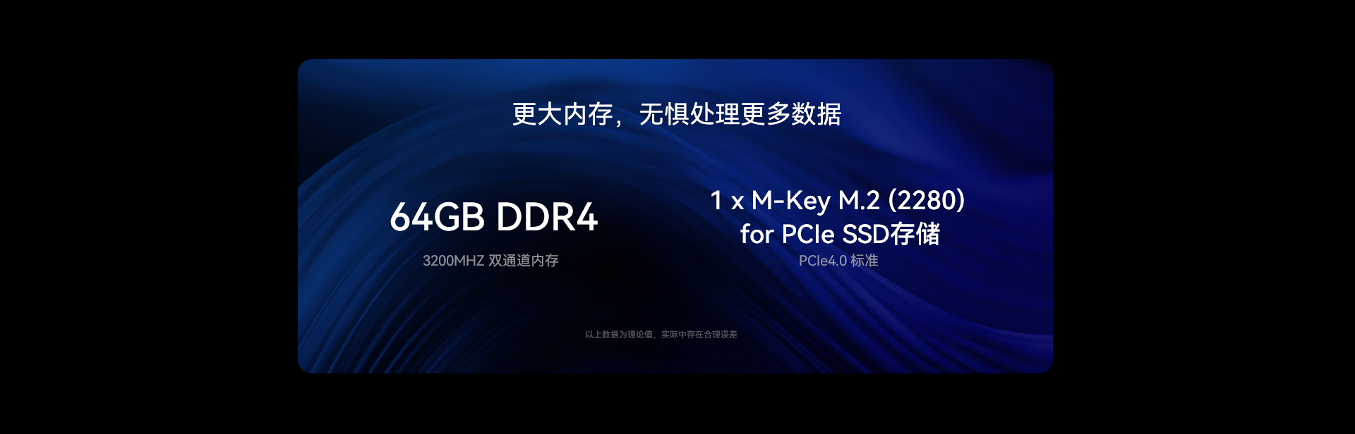 采用双通道DDR4内存设计,最大可扩展至64GB