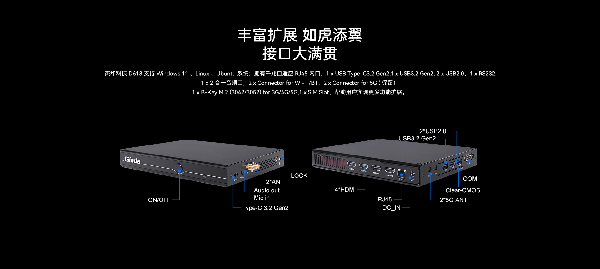1 x E-Key(2230)for Wi-Fi/BT,支持 Wi-Fi5/6/6E(CNVi)