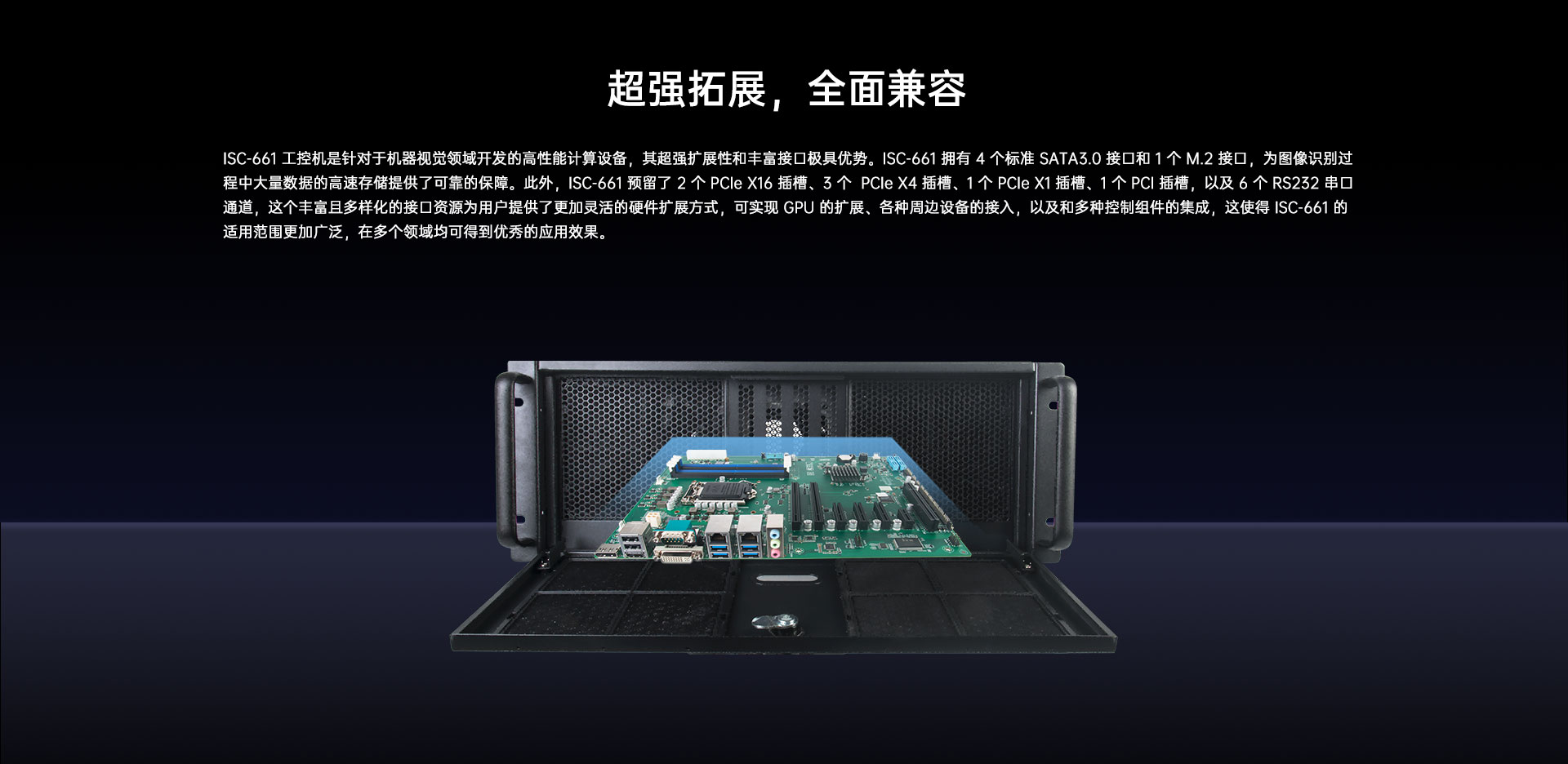 | 接口 | 5 x COM,2 x PCIe X16 ( 1 x PCIe X16 or 2 x PCIe X8 ),3 x PCIe X4, 1 x PCIe X1,1 x PCI | |